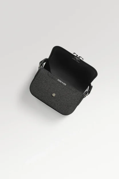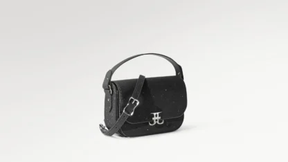 Nocturnal Materials & Fluid Form In this edition, the iconic saddle silhouette is elevated by a body of Italian Black Stardust—a premium material celebrated for its subtle, multi-dimensional metallic sheen. This luminous texture is framed by the rigid, polished authority of Italian Boxed Calf leather. The interior is fully leather-lined, ensuring a seamless luxury experience that feels as powerful and expansive as a midnight sky.