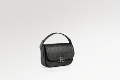 • Materials: Metallic Silver Stardust & Italian Black Boxed Calf Leather