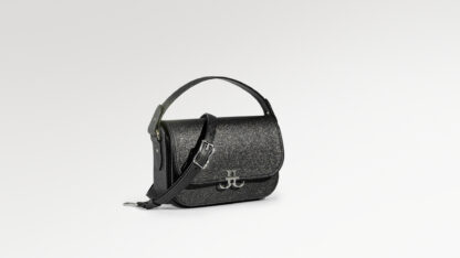 Brilliant Materials & Fluid Form In this edition, the iconic saddle silhouette is elevated by a body of Italian Silver Stardust—a premium material celebrated for its intense metallic brilliance and multi-dimensional sheen. This radiant texture is framed by the rigid, polished authority of Italian Boxed Calf leather in deep black. The interior is fully leather-lined, ensuring a seamless luxury experience that feels as powerful and clear as a moonlit path.