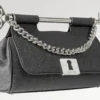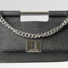 Celestial Materials & Refined Texture The Legacy is rendered in a tonal mix of Italian Black Stardust—a material celebrated for its subtle metallic sheen—and smooth Black Boxed Calf leather. The shimmering Stardust panel provides a tactile, visual depth that shifts beautifully under evening lights, while the leather-lined interior ensures a luxurious experience from the inside out.