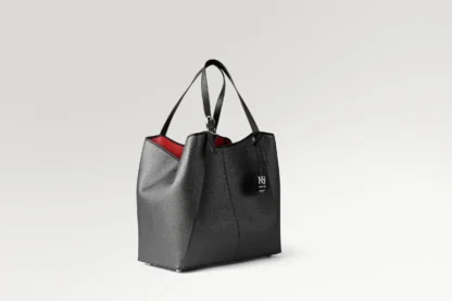 Radiant Materials & Disciplined Structure Crafted for lasting impact and undeniable presence, the Muse Tote features a body of Italian Silver Stardust—a premium material celebrated for its intense metallic luster and sophisticated shimmer. This luminous texture is framed by the architectural authority of Italian Boxed Calf leather in deep black, creating a high-contrast aesthetic that is both futuristic and timeless. The interior is fully leather-lined, ensuring the bag maintains its iconic, upright shape through a lifetime of use.